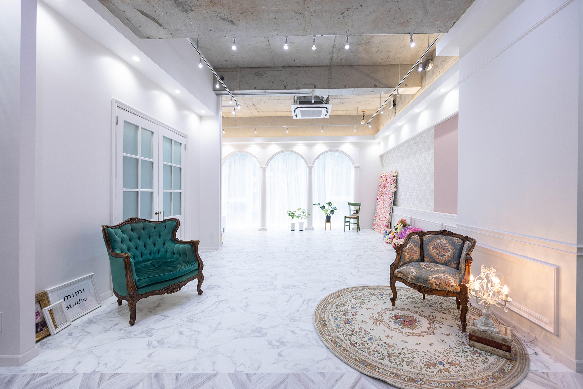 白壁をはじめとした様々な背景がある優雅なレンタル撮影スタジオ。 企業様の商品撮影やカタログ撮影はもちろん、ワンフロア完全貸切スタジオですので、ご家族やペット、親しいご友人同士の撮影など個人利用のポートレート撮影などにもご利用いただけます。